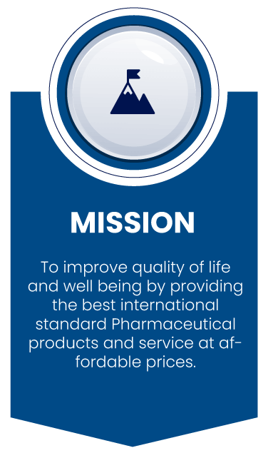 To improve quality of life and wellbeing by providing the best international standard Pharmaceutical products and service at affordable prices.