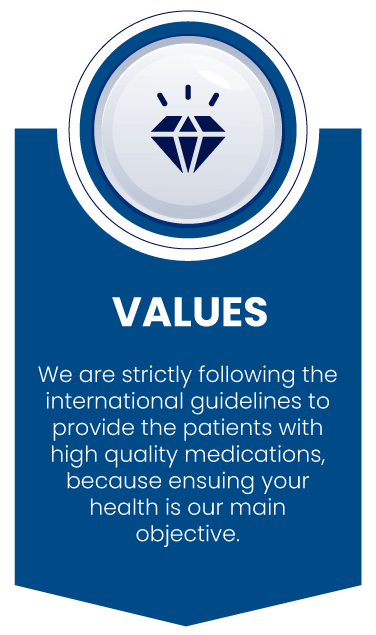 To improve quality of life and wellbeing by providing the best international standard Pharmaceutical products and service at affordable prices.